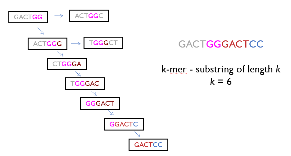 Reads can be broken down further into k-mers (substrings of length k), and these k-mers are used to find overlaps between different reads. For example, if two reads share a significant number of k-mers, it’s a strong indication that they overlap.
