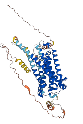 CB1 is a 7-transmembrane domain (7TM) septa-helical protein with less-structured tails on both termini. This is reflected in the 3D structure, where disordered regions (“ribbons”) are low-confidence and helices are high-confidence.