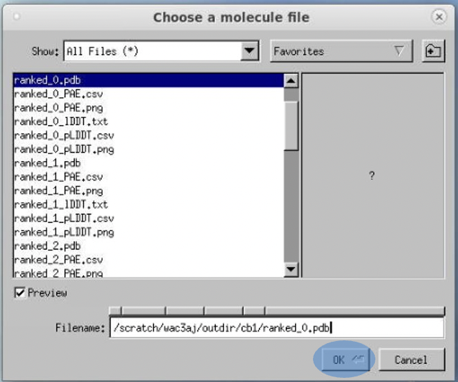 The VMD windows will launch. From there, you can open your .pdb file from the AlphaFold output directory to view the 3D model (colored by pLDDT).