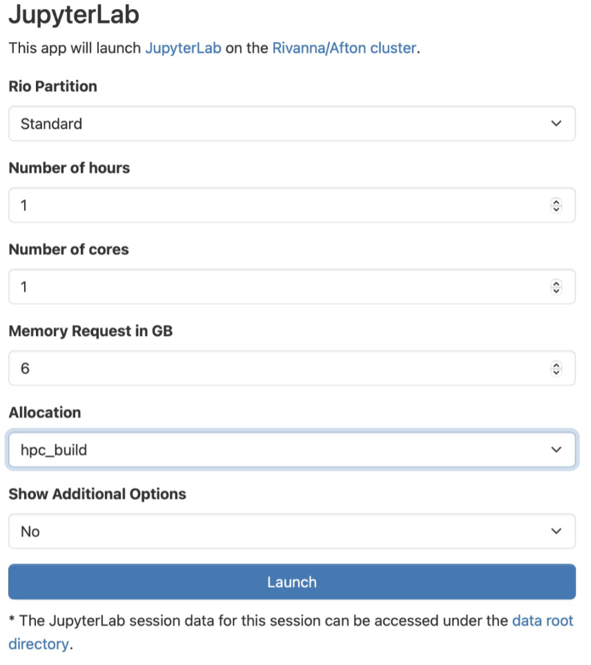 The above example is for starting a JupyterLab session.