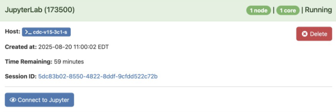 When the job has started, the status will change from Queued to Running. A button will appear to open a browser, launching the interactive session.