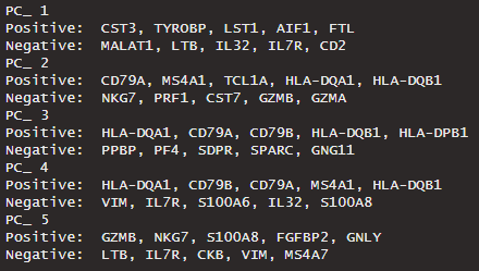 print(pbmc[["pca"]], dims = 1:5, nFeatures = 5)