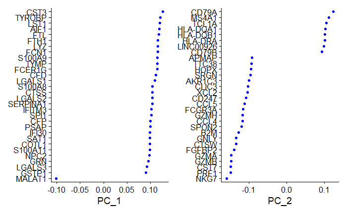 # Visualize gene loadings for PC1 and PC2