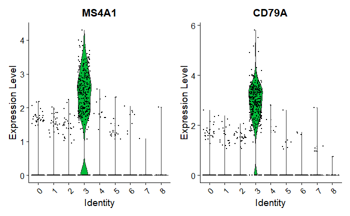 VlnPlot(pbmc, features = c("MS4A1", "CD79A"))