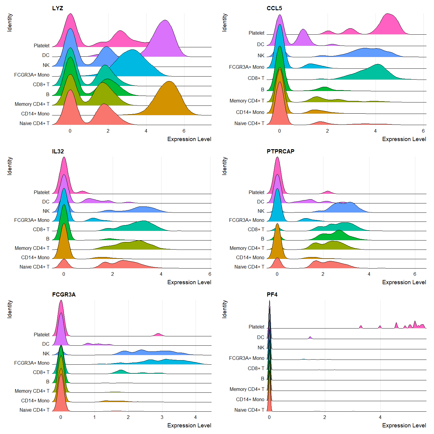 features <- c("LYZ", "CCL5", "IL32", "PTPRCAP", "FCGR3A" "PF4")